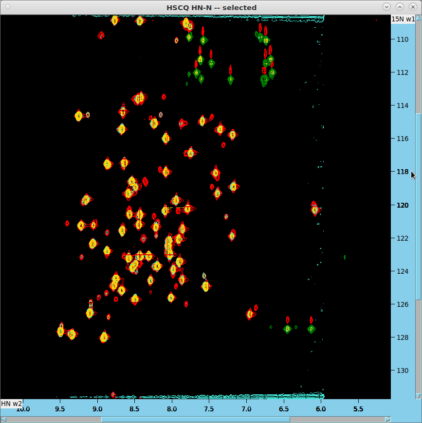 - Load again both 15N HSQC and 13C HSQC, to alias peaks on the 15N, HN and on 13C,HC dimensions, respectively.